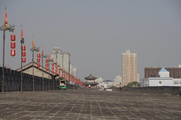306버스는 종점이 병마용이다. 그래서 다시타고 나와 서안역에 내린다. 어제부터 L형 장안성 위를 올라갈려는 생각이 많은 것 같다. 너무 아까운 생각이 들긴 들었지만. 우린 서안역 바로 앞에 있는 성 오르는 곳으로 올라갔다.과연 넓이가 넓긴 넓다 . 우리가 올라간 길은 장안 성을 쳐들어가는 적의 입장에서 올라가는 길이어서 경사도 심한사다리가 있었는데 성 안쪽에서 오르는 사람들은 쉽게 오르는 것 같았다. 성벽인데 자전거를 타고 다닌다. 차도 다닌다는데..차는 보질 못했고 청소용 차량이 정차되어있는 모습만 보았다. 주로 유럽인들이 자전거를 빌려 타고 성벽을 일주하는 모습이다. 날도 더운데 하얀 살 다 탄다. 애들아! 황인종으로 변한단 말이야! ㅋ ㅋ