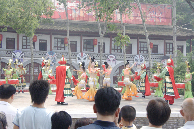 이 더위에 어디선가 음악소리와 함께 공연을 하는 모양이다 . 얼른 가자~~ 빨리 간 덕에 앞자리에서 공연모습을 카메라에 담을 수 있었다. 돈만 많이 받지 말고 이런 공연 많이 해주란 말이다.  화청지 정문 앞 차장이 말한 대로 버스를 기다리는데 날씨는 덥고 택시는 유혹하는데 15위안에 병마용 간단다. 3위안 아끼느니 시간을 아끼자고요…. 택시 승차. 그런데 택시기사 진시황릉을 지나가는데 뭐라 뭐라 한다.이유인 즉 황제에게 먼저 예를 갖추고 병사들을 보라는 것이다 . 아! 그렇구나!~ 알았어요. 참고하지…우리의 일정에 진시황릉이 없었다 . 나도 왜 그런지는 지금도 모르겠다. 일정을 내가 계획했는데도 말이다. 혹 다음에 가시는 분 있으면 그런 줄 알고 가시면 좋은 정보가 될 듯 . 그래도 우리는 우리의 계획대로 병마용을 향해 갔더니 이 기사 별로 맘에 들지 않는 모양이다. 너네 황제지 우리의 황제는 아니지….오늘 일정에서 드디어 제일 먼 그리고 서안하면 제일 보고 싶어 했던 병마용이다 . 들어서는 입구부터 진시황의 큰 동상이 압도한다. 조그맣게 좀 만들지… 넓은 주차장과 많은 차량들 사람들.. 내외국인들 …가득하다.과일 파는 아저씨 복숭아 4개 10원 샀더니 남은 6개 8원 6원 5원….자꾸 가격이 떨어진다. 가방이 무거워서 더는 못 사겠다. 거저 주지 그냥..병마용 정확한 이름은 <진용박물관>이다. 입장료 90위안/1인 표를 사서 들어갔는데 입구에 외국인을 위한 번역기가 있는데 한국어 있냐고 물어보니 없단다.  몸매 잘 빠진 아가씨 미국인과 같이 “안녕하세요?”한다. 같이 인사. 한국인인가보다. 옷을 너무 야하게 입었다. 왜 한국어는 없단 말이냐. 한국인 방문객이 많이 있을 텐데 말이다….혹시가 역시로 변하고. 이곳에서도 또 한참을 걸어야 박물관이 나온다. 그사이에 모터카를 이용 돈을…2원.. 우린 땀 삐질 삐질 흘리면서 걸어간다. 잠시 그늘에서 쉬면서 물 한 모금…제 1,2,3전시관 그리고 영화관이 있다. 두루 돌아보고 휴게실에 들러 컵라면과 커피 물을 사서 마시며 휴식..너무 크게 만들어서 구경하기 어렵게 만든 것이 중국 관광지의 특징인 것 같다.