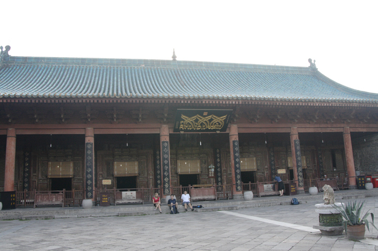 2~3km 성벽을 걸어서 성문을 통해 내려와서 가게에서 아이스크림 하나씩 사먹고 청진대사를 가기위해 택시를 잡았다. 택시 안 간단다. 승차거부인가??!!  그래 시내버스도 한 번 타보는 것도 좋지….시내버스를 타고 종루에서 내려 고루를 거쳐 이슬람 거리를 지나 골목길을 이리 저리 돌아 청진사에 도착했다. 입구 문지기 한국말로 인사한다. 발음도 정확하다. 기념으로 사진 한 장 찍고…완존히 이슬람. 독특한 건물의 이슬람사원이다. 이슬람 문화가 이곳 장안에까지 왔던 것이다.  이곳의 특징은 이슬람 사원인데 중국식 건물양식으로 지어졌다는 것이고 아담하게 꾸며진 정원들로 꽉차있다. 이들 문화 특히 이슬람에 대해 아는 것이 없어서..